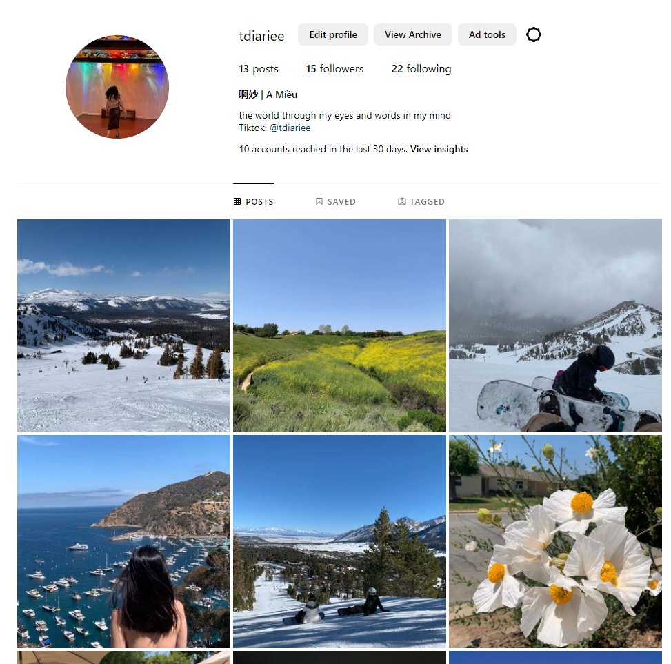 TikTok is a platform for me to document these little moments with family and friends, doing things I love such as travelling, dancing, snowboarding, etc.