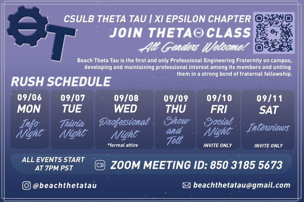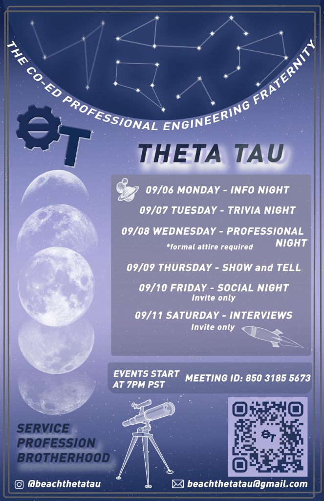 An additional notable role during my time as a student is being a brother of Theta Tau, a co-ed professional engineering fraternity, Xi Epsilon chapter. Being a member of Theta Tau, we strive to promote community services as well as brotherhood among our brothers and the potential members. We host various profession development sessions for our members, inviting alumni in the workforce for networking events, and make great efforts in preparing our brothers for the foreseeable post graduation challenges. As a member, I was honored to be the Chair of Recruitment and Outreach Committee for Fall 2021. I took charge of a 6-member committee and worked with 4 other committee chairs in delegating tasks for RUSH Week, one of the most prominent events for our club. In order to keep a minimal budget, I took over designing the club poster and postcard for the semester recruitment season via Adobe Photoshop. Throughout the semester, I worked on monthly newsletters where we share events that our brothers were engaging in as well as our notable achievements, individually and as a whole.